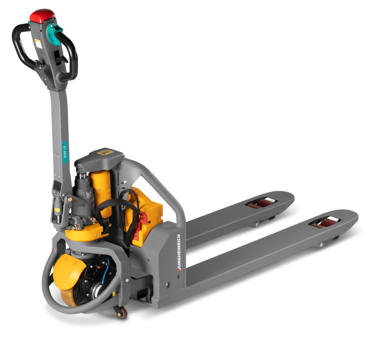 Os fiáveis e económicos porta-paletes elétricos AME 13 são os nossos modelos básicos de preço acessível no segmento de porta-paletes elétricos. Eles são ideais para tarefas simples como o transporte diário de paletes em armazéns e lojas. Devido ao seu design compacto e peso próprio extremamente baixo, os porta-paletes brilham particularmente em espaços apertados e ambientes sensíveis ao peso com a sua impressionante manobrabilidade. O chassis robusto, o manuseamento fácil e a eficiência energética máxima garantem um desempenho fiável. Uma bateria de iões de lítio garante disponibilidade máxima e o seu desempenho pode ser aumentado ainda mais graças à função de carregamento de impulso e oportunidade. O elemento de comando, adequado para destros e esquerdinos, permite um manuseamento fácil para o operador.