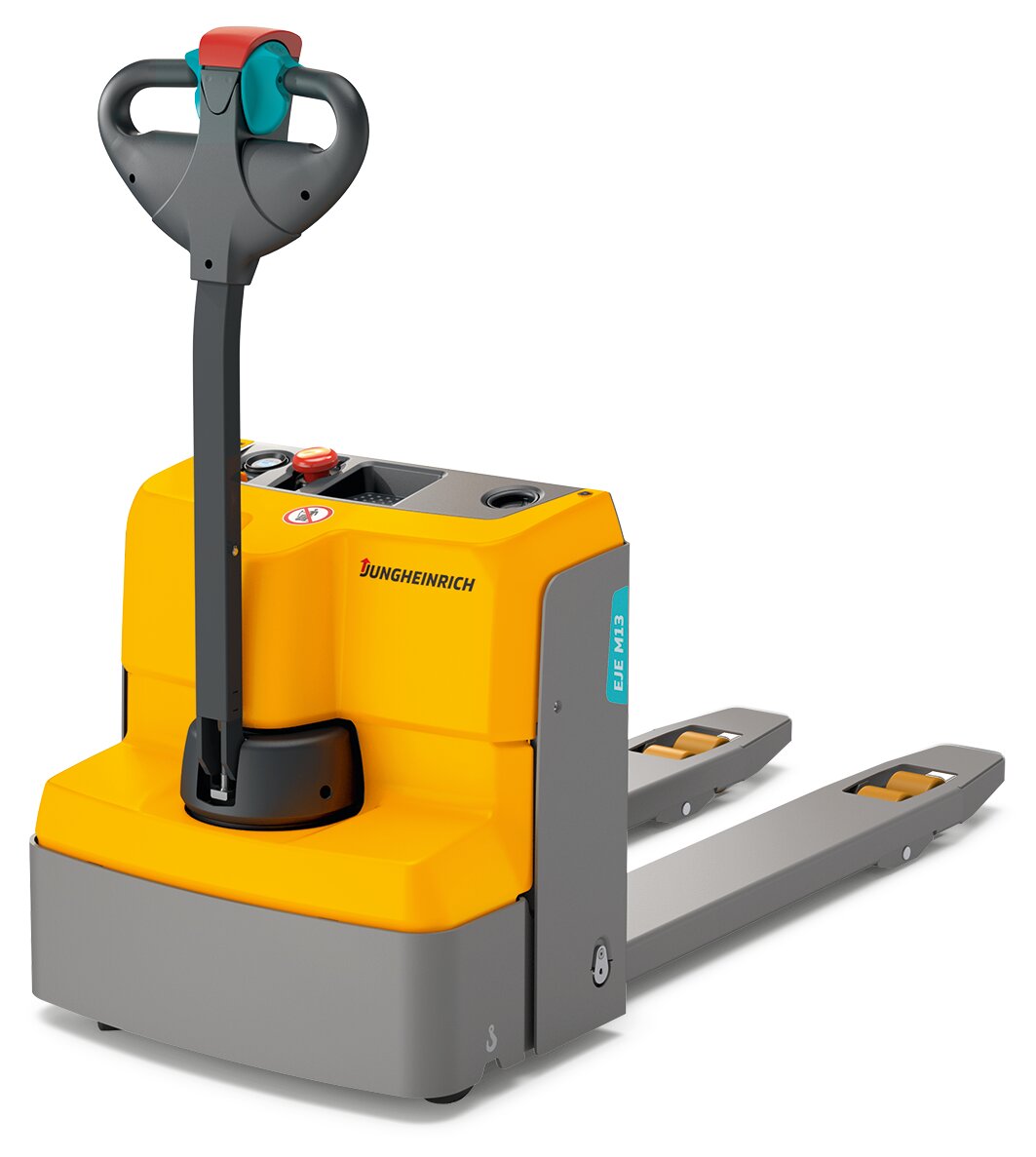 Os porta-paletes elétricos de baixa elevação EJE M13/M15 extremamente económicos e compactos são o suporte ideal para o transporte interno de mercadorias em pequenas e médias empresas. Com o seu design compacto, podem mover rapidamente e a baixo custo paletes e mercadorias em espaços confinados. Para reduzir o consumo de energia ao mínimo, os porta-paletes da série M estão equipados com tecnologia de corrente trifásica potente e baterias de iões de lítio ou AGM isentas de manutenção. O carregador integrado permite o carregamento conveniente e rápido em qualquer tomada de 230 V. Além disso, a ergonómica cabeça do timão, a baixa altura acima do solo com roletes de entrada especiais para a recolha fácil de paletes e duas rodas de apoio com amortecidas e suspensas garantem um nível particularmente elevado de segurança e estabilidade. A função de pesagem opcional é utilizada em todas as aplicações em que as mercadorias necessitam de ser pesadas e transportadas. Assim, pode executar duas etapas de trabalho de maneira rápida e eficiente com um único equipamento.