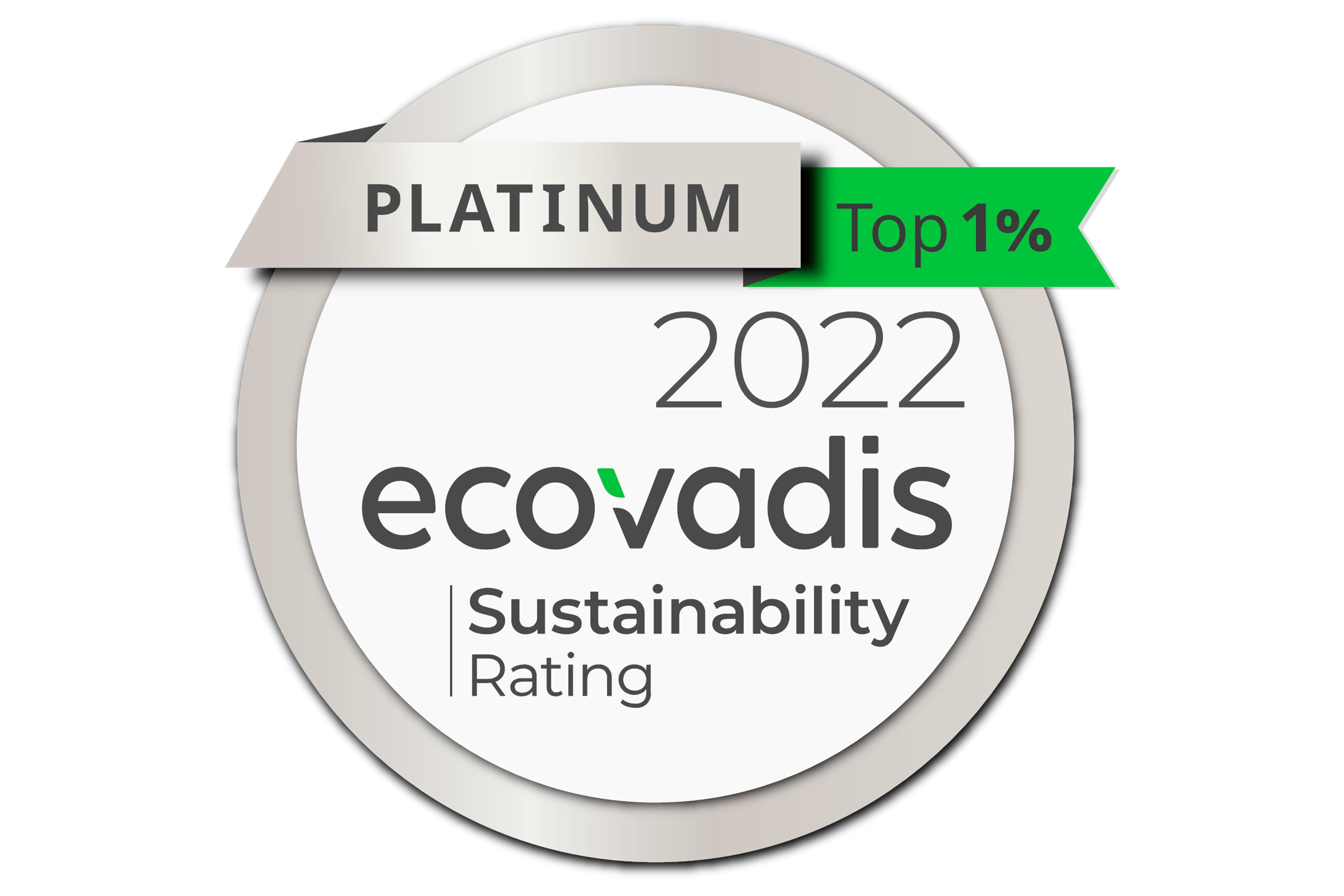 A agência EcoVadis analisou mais de 100.000 empresas em todo o mundo para verificar o nível de responsabilidade corporativa. Apenas os mais sustentáveis (1%) recebem o certificado de platina, o mais elevado da EcoVadis.